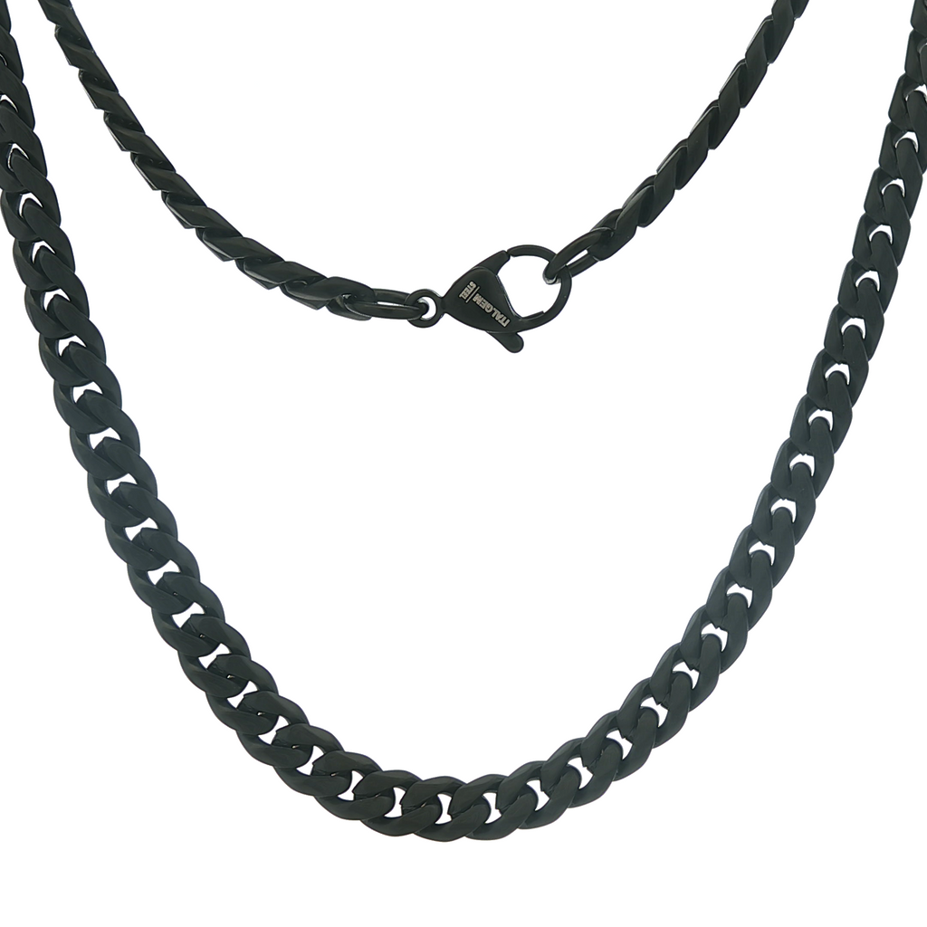 Sleek and modern, this men’s curb chain is crafted in durable black ion plated stainless steel with a matte finish. Measuring 4.6mm wide and 22 inches long, the chain is secured with a sturdy lobster clasp. A versatile piece, perfect for standalone wear or layering with other necklaces.