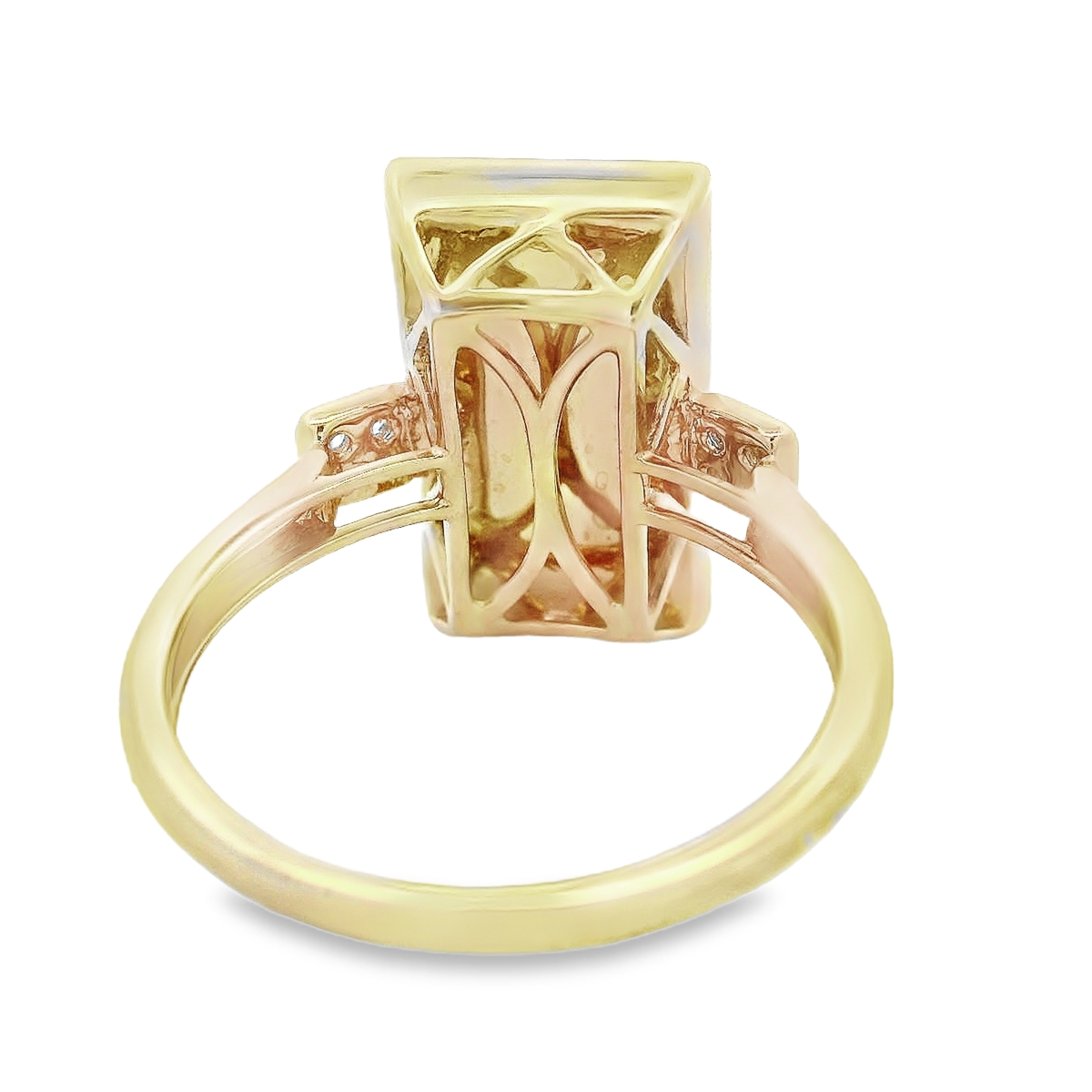 14K Yellow Gold 3.48 Carat Rectangular Ammolite & 0.06 Carat Diamond Ring