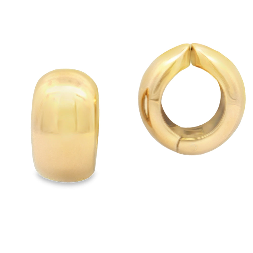 Design: Clip-on wide huggie hoop earrings with a high-polished finish for a sleek, reflective shine