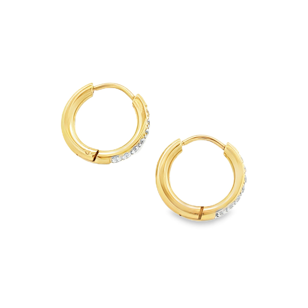 Gold Ion-Plated Stainless Steel Cubic Zirconia Huggie Hoop Earrings