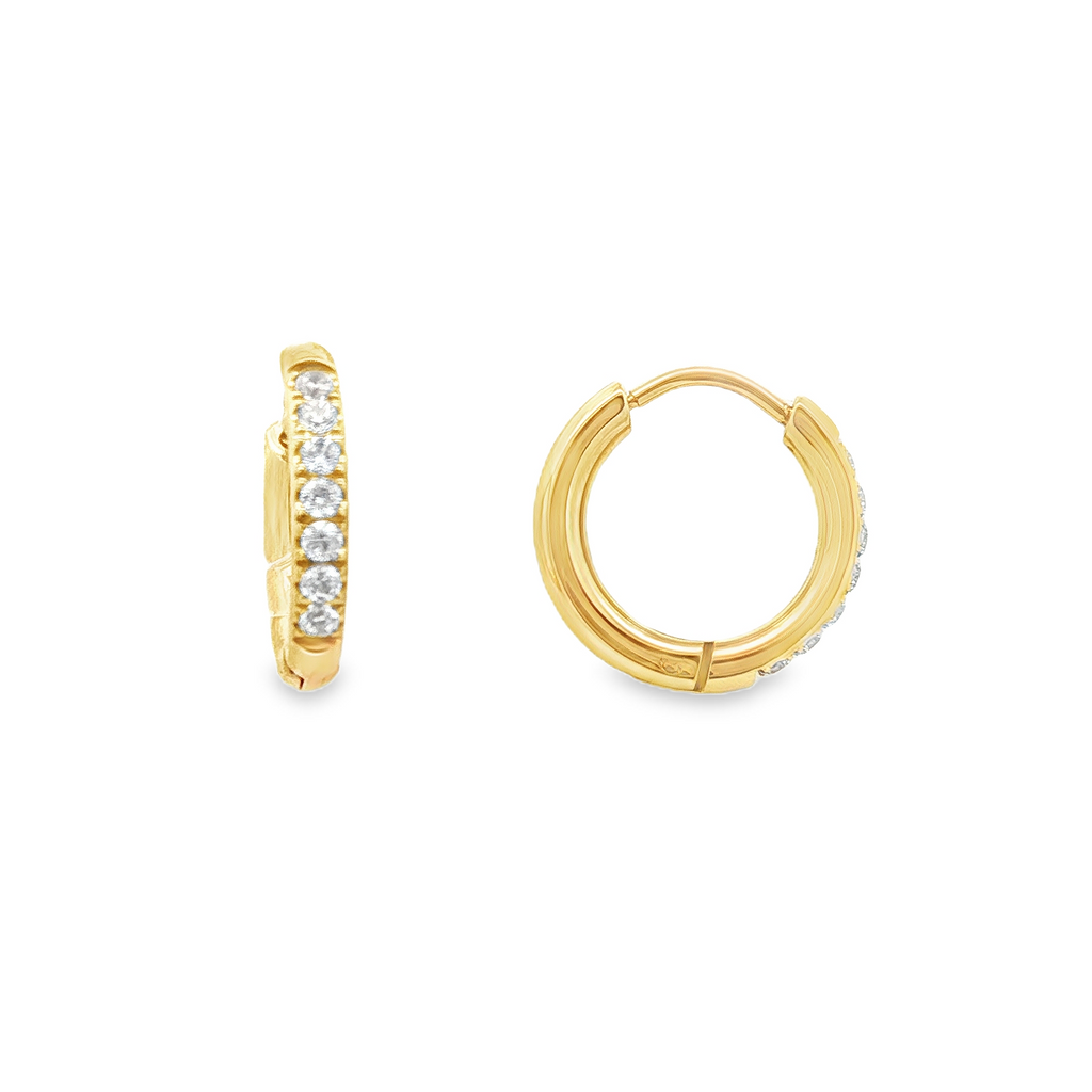 Design: Huggie hoop earrings with brilliant cubic zirconia stones for added sparkle