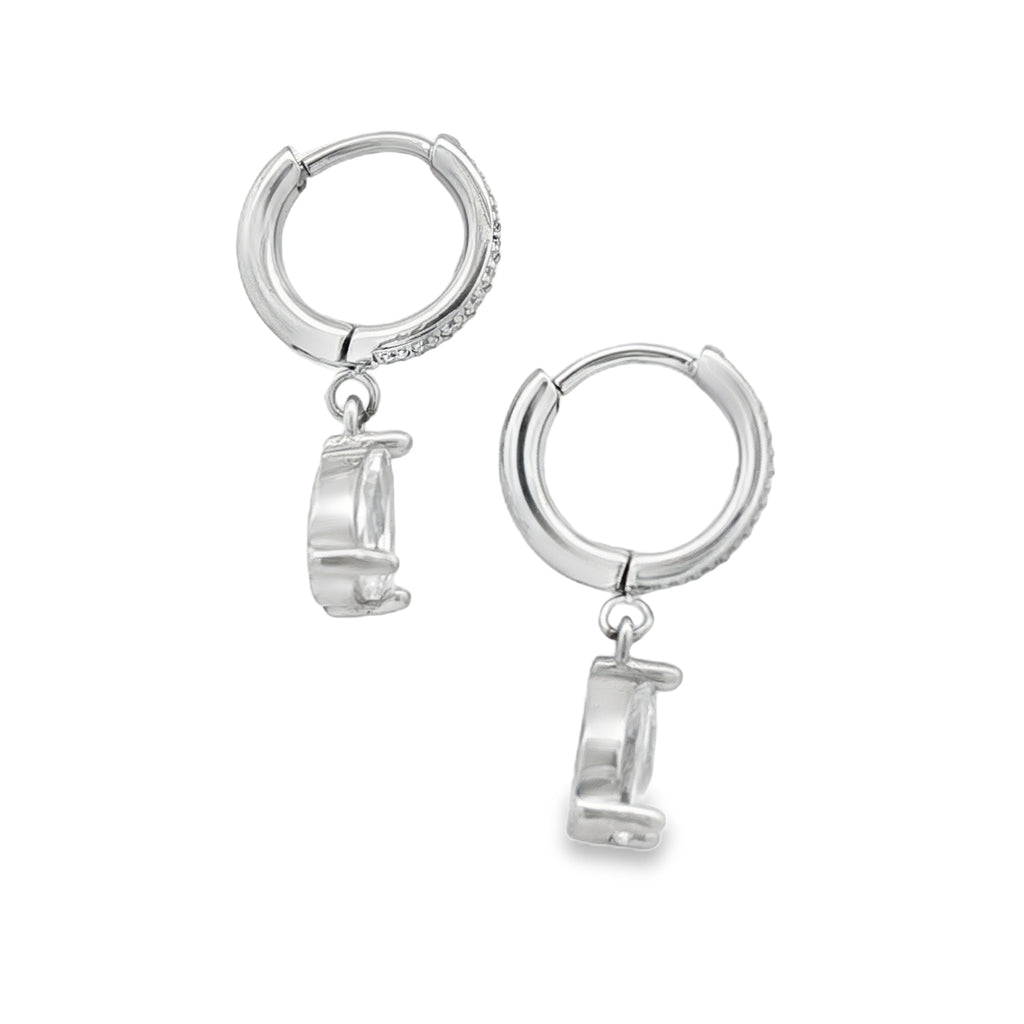 Stainless Steel Cubic Zirconia Pear Shape Drop Huggie Hoop Earrings