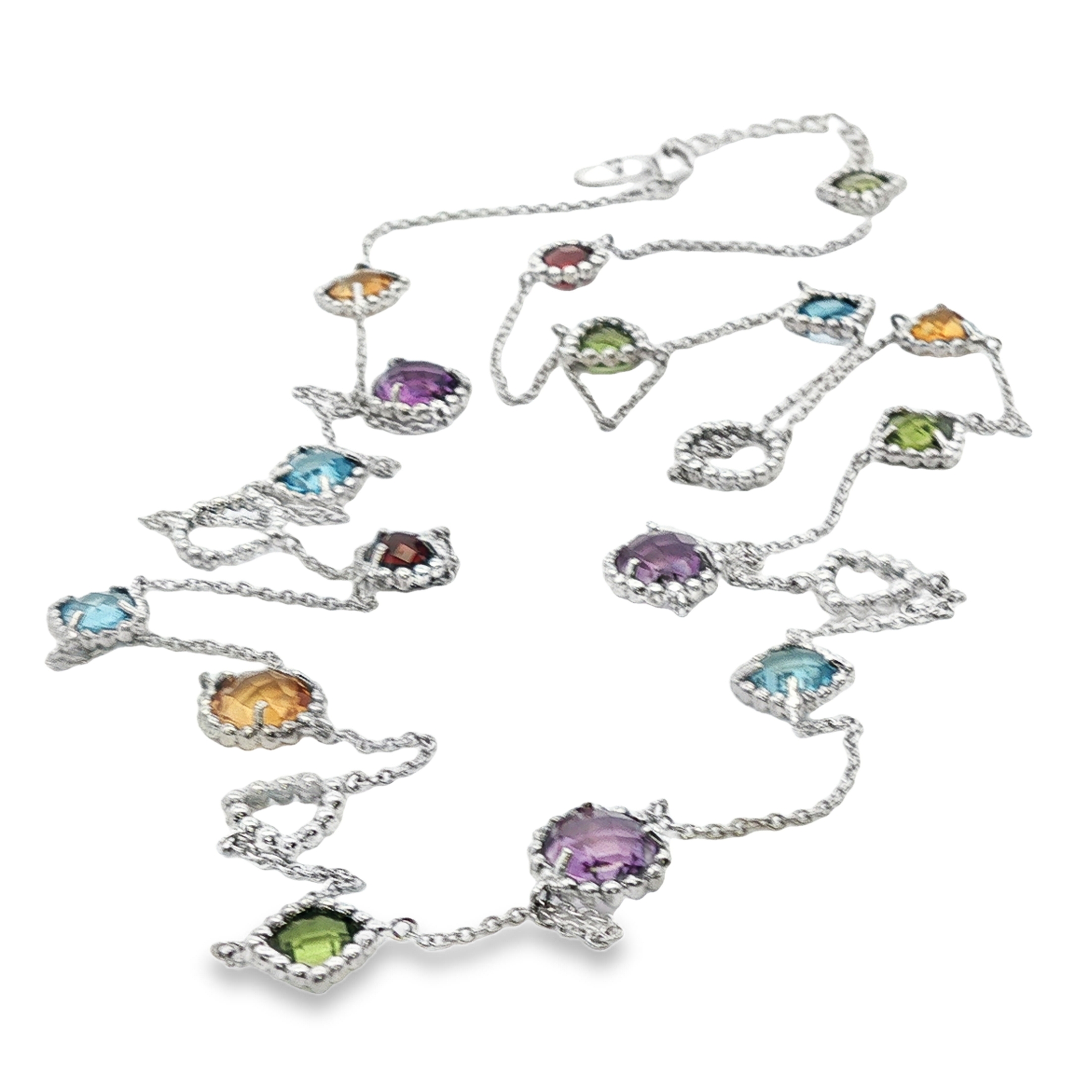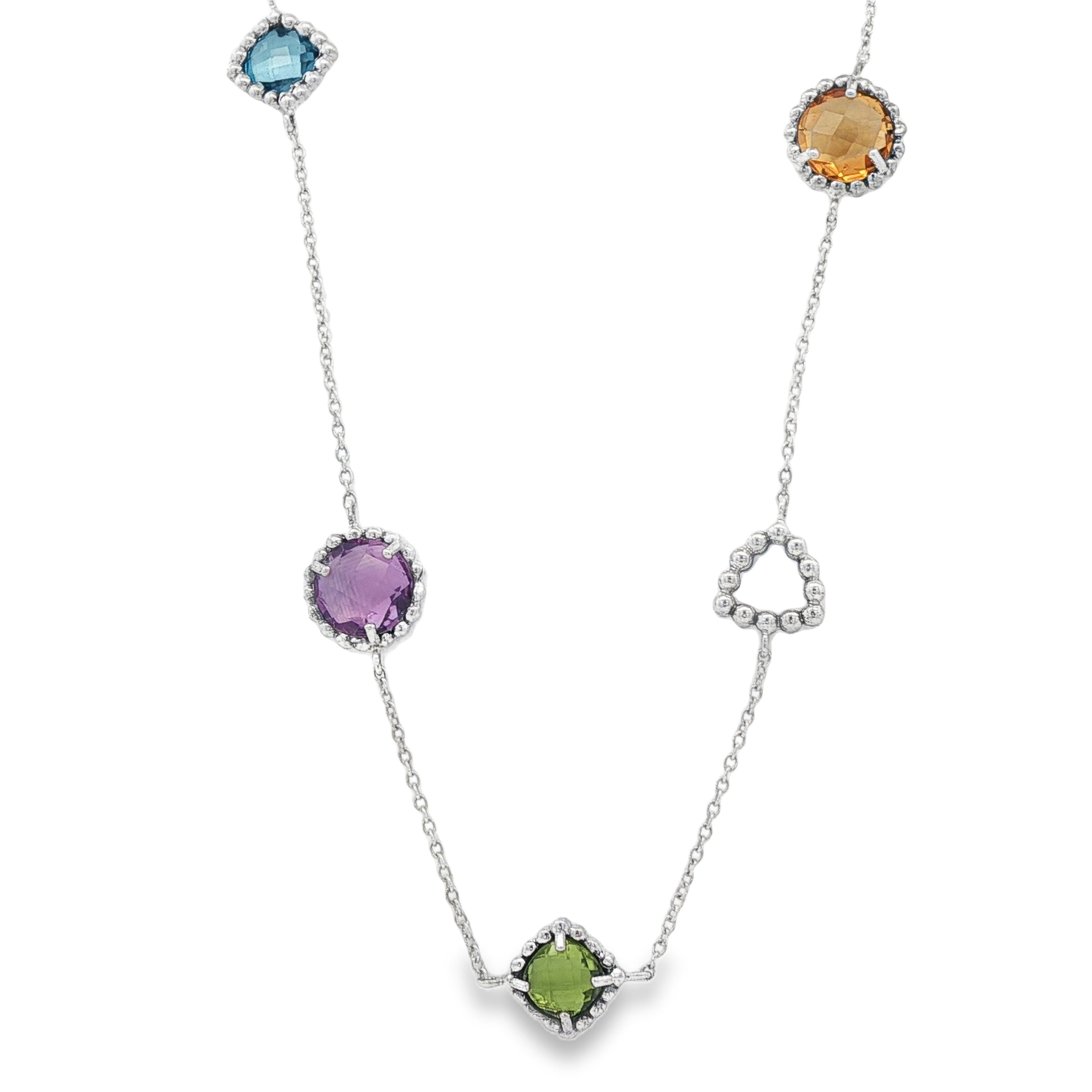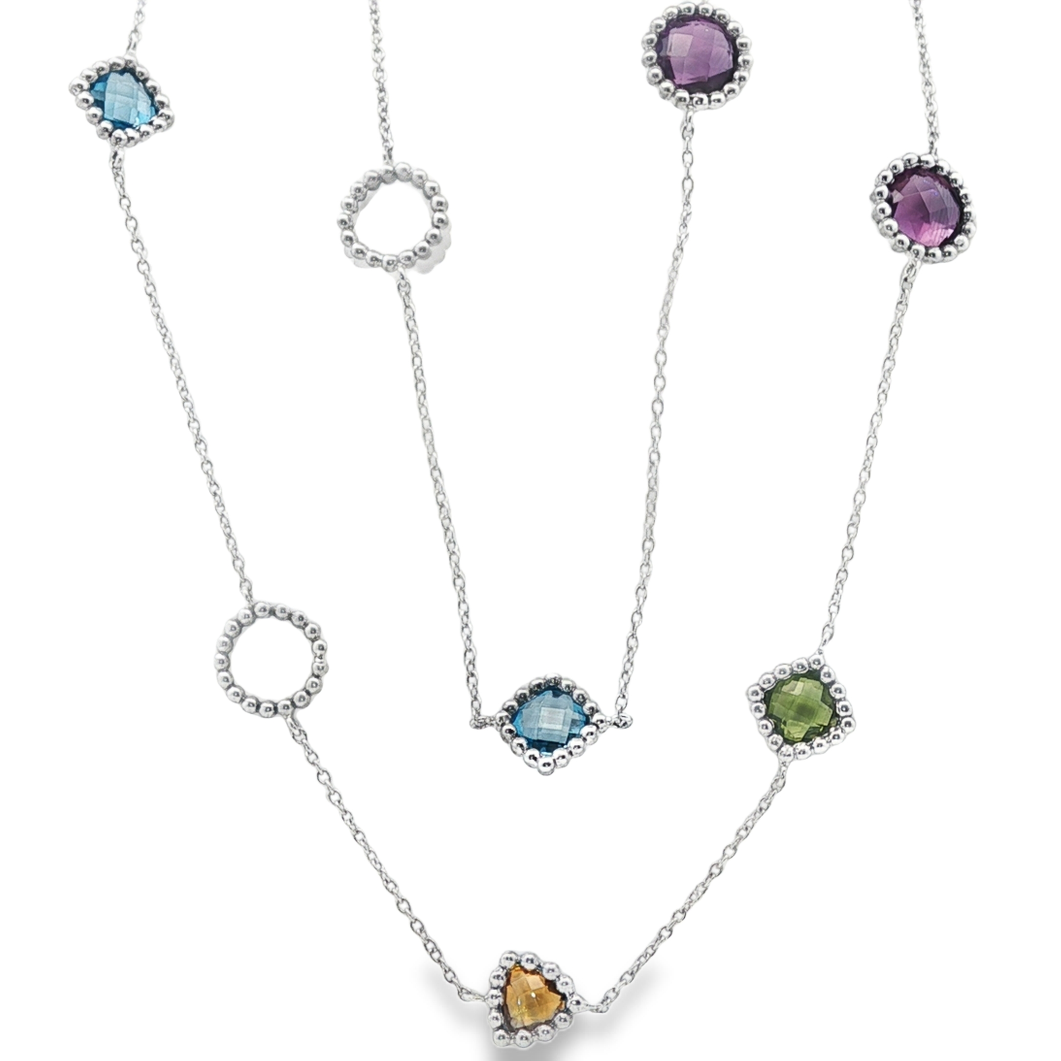 Sterling Silver Multi-Color Gemstone Station Necklace – 39.5"